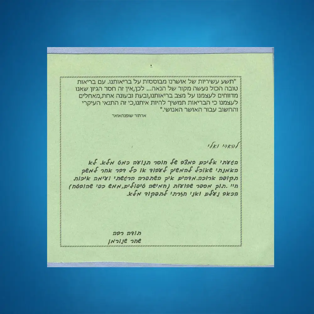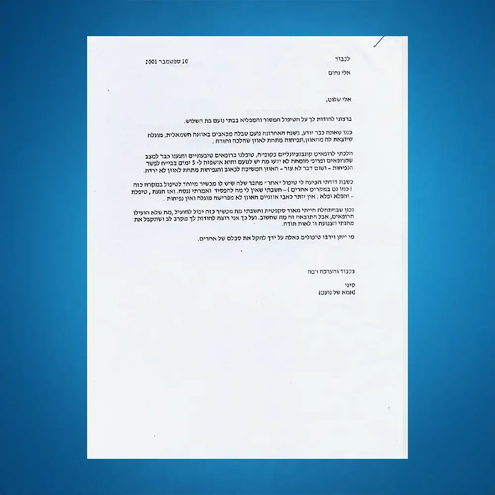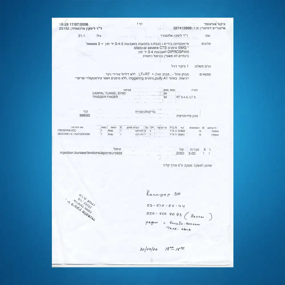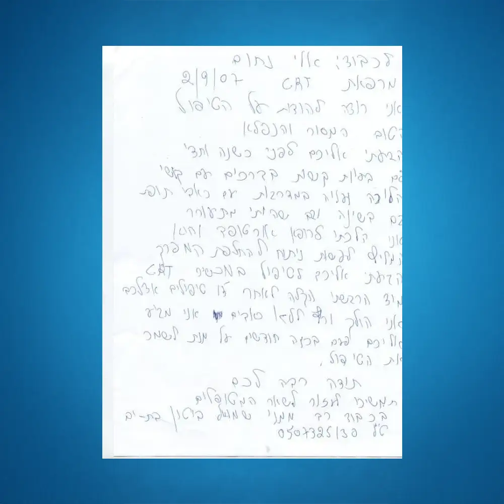 אלי שוורץ מראשון לציון קיבל טיפול לדורבן הרגיש הקלה לאחר טיפול ראשון ולאחר 5 טיפולים חזר לדרוך על הרגל ללא בעיה ״כמו בן אדם חדש , לא ידעתי עוד למי לפנות ״